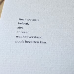 "Kabbel maar in de zee van het leven. Laat je meevoeren, zachtjes door de wind. Vertrouw op jezelf en het gegeven, dat je vanzelf je weg wel vindt."