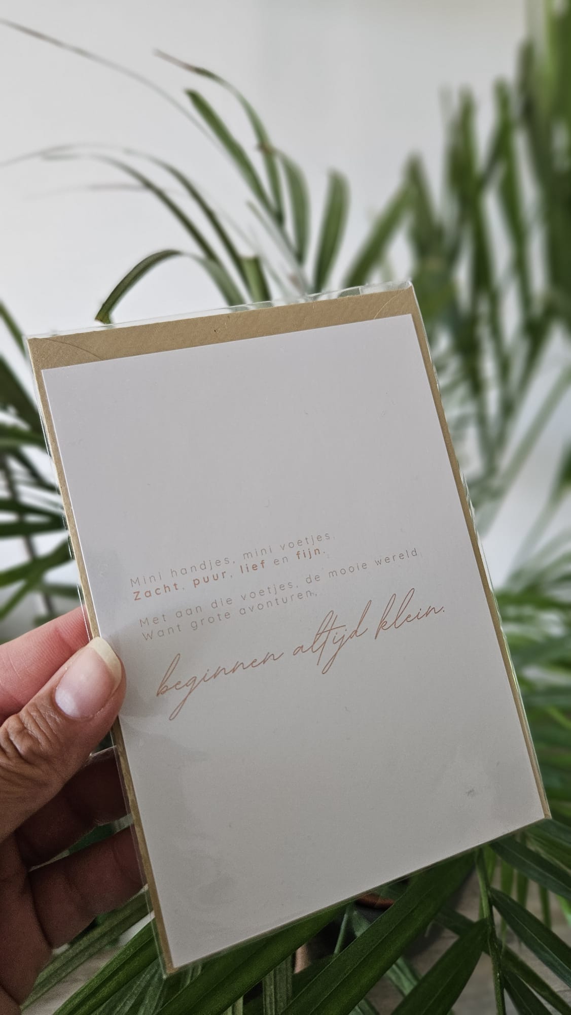 A6 kaart inclusief kraft envelop, met mijn gedicht ‘Grote avonturen beginnen altijd klein’.