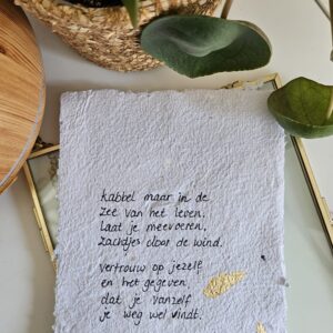 "Kabbel maar in de zee van het leven. Laat je meevoeren, zachtjes door de wind. Vertrouw op jezelf en het gegeven, dat je vanzelf je weg wel vindt."